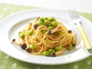 塩を加えて更に炒め、キャベツがしんなりしてきたらパスタの茹で汁を少し(大さじ2程)加えて乳化させ、醤油をひと回しかけ、パスタと合わせたら完成です。