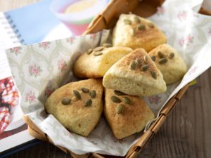 パスタを加えて炒め、スナックえんどうを加える。塩・胡椒、顆粒昆布だしを加えて軽く炒める。