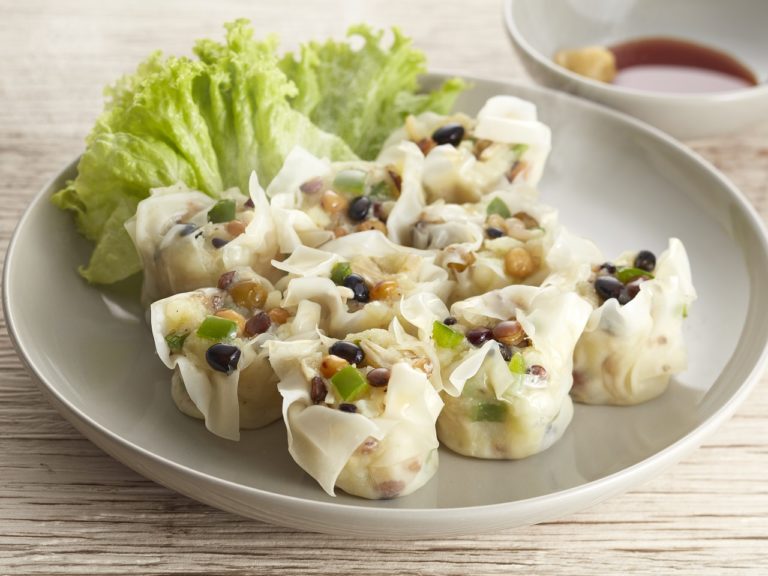 豆と穀物、ポテトを使ったシューマイです。ピーマンやえのきも入っていますので、様々な食感が楽しめます。電子レンジで蒸したお手軽シューマイ、是非お試しください☆
