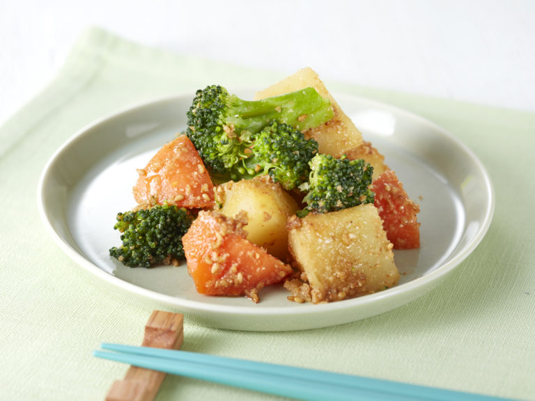 年間通して手に入りやすいお野菜を使った胡麻和えレシピです。ブロッコリーとじゃがいものビタミンC、胡麻の抗酸化物質ゴマグリナンで、アンチエイジング効果アップが期待出来るレシピです。