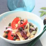 半分にカットし、弱火で1時間煮る。ザルにあけ、水にさらす。水に浸したままラップをし冷蔵庫に入れて一晩置く。