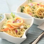 しっかりなじんだら器に盛り付け、鷹の爪をトッピングして完成です。