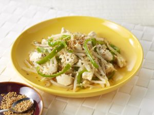 ボウルにもやし、ピーマン、調味料を混ぜ合わせたら完成です。