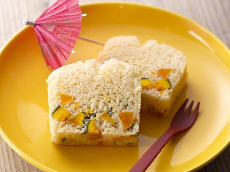 栄養価の高いかぼちゃを使った蒸しパンです。かぼちゃにはビタミンA・C・Eが豊富に含まれ、βカロテンには粘膜の細胞を強化して免疫力を高める効果があるそうです。お子様からお年寄りの方まで食べやすい味になっているので、おやつの時間にぜひどうぞ☆