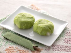 ラップに1/8のあんをのせ、1/2の餅ものせまるめて形を整える。