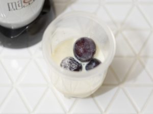 ぶどうを洗って水気を拭き取り、冷凍庫でカチカチに凍らせます。(時間外)