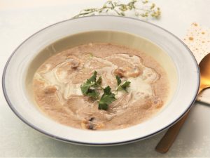 全体に火が通り、マッシュルームがしんなりしたら、塩で味を整え、器に盛り付け完成。